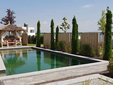 Unterteilt in einen Schwimmbereich und einen Pflanzen- bzw. Klärbereich, genießen Sie ein unvergleichliches Schwimmvergnügen.