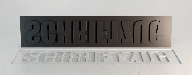 In der Variante besteht die Schalungseinlage aus losen Buchstaben. Werden diese spiegelverkehrt in die Schalung gelegt, ergeben diese entsprechend der gewählten Stärke eine Vertiefung innerhalb der ansonst ebenen Sichtbetonfläche. Form 1 ist fertigungstechnisch die einfachste Ausführung und sehr preisgünstig.