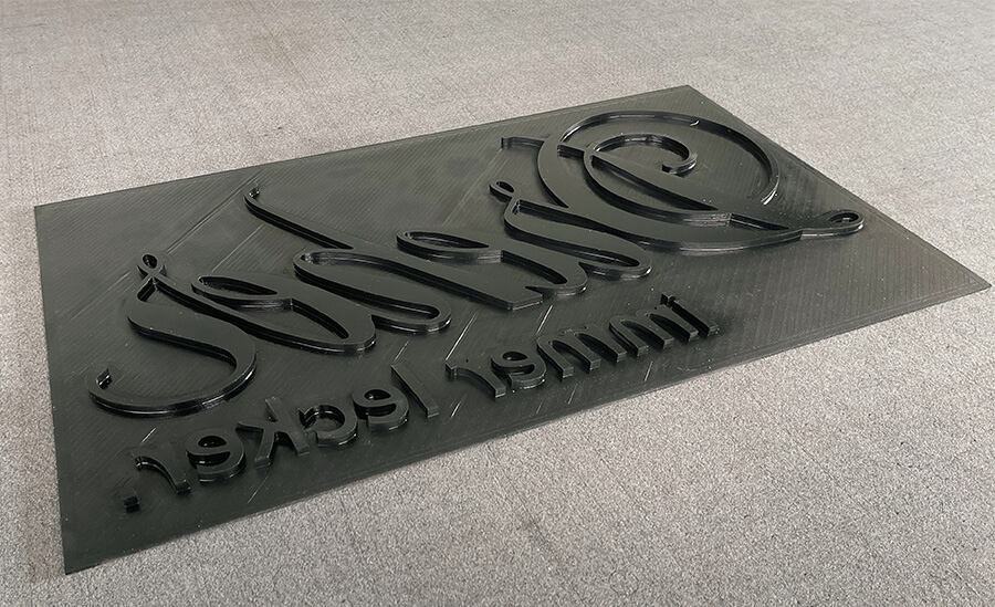Form 3 stellt in gewissem Maße das Gegenstück zu Form 2 dar. Diese Ausführung bildet zunächst eine tieferliegende Gestaltungsfläche. Der eigentliche Schriftzug hebt sich von dieser als Positiv (hervorstehend) ab. Der Fertigungsaufwand von Form 3 ist geringer als Form 2, die Anwendung (konkret das Entschalen) ist jedoch bei kleinteiligen Schriftzügen schwieriger.